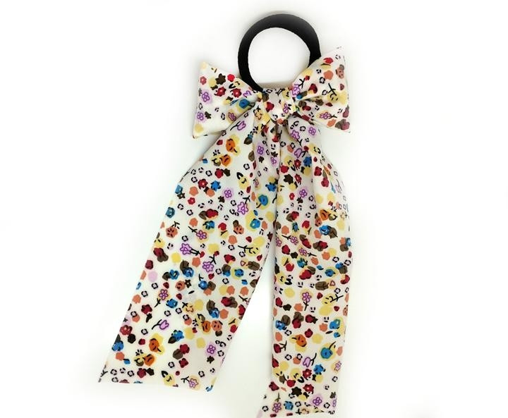 Гумка для волосся бант Твіллі білий з квітами